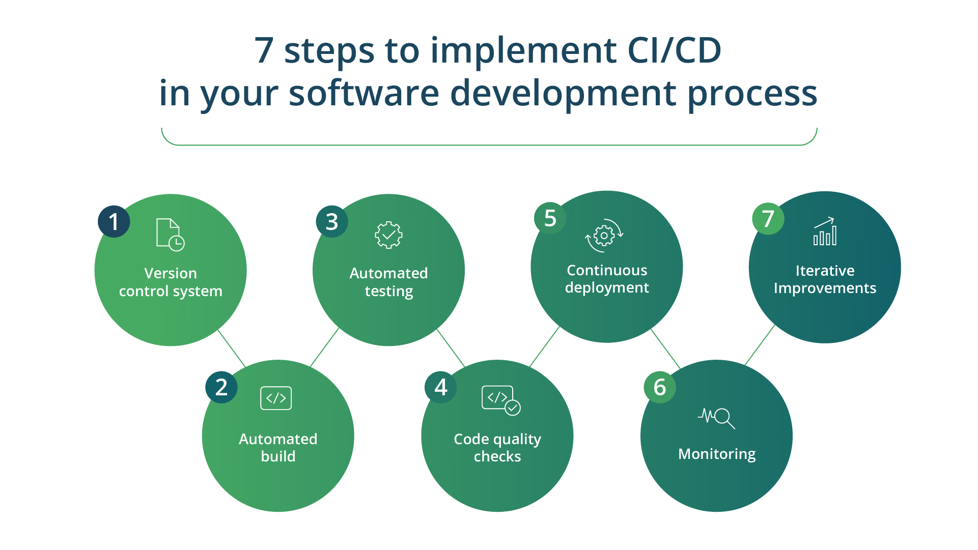To implement Continuous Integration and Continuous Deployment in your software development process, you need to use a combination of tools and best practices. But where do you start? Here are seven simple steps to get your CI/CD pipeline up and running.